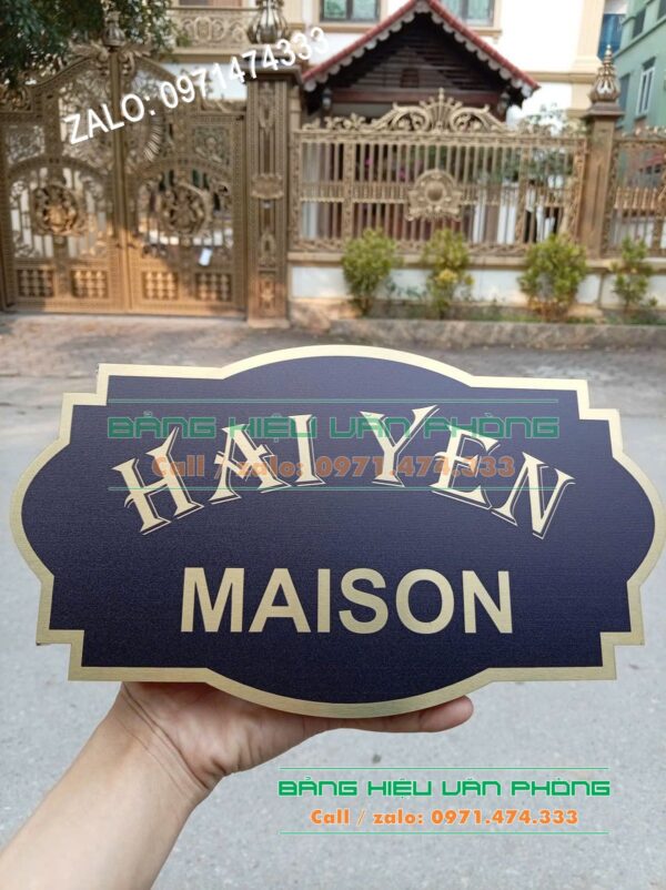 Biển số nhà inox mang lại vẻ đẹp sang trọng và bền bỉ cho mọi công trình. Sản phẩm được làm từ chất liệu kim loại cao cấp chống ăn mòn hiệu quả. Bảng villa biệt thự giúp nâng tầm giá trị thẩm mỹ cho không gian sống của bạn. Thiết kế này đặc biệt phù hợp cho các căn hộ cao cấp hiện nay. Biển inox uốn chân nổi tạo hiệu ứng 3D vô cùng sắc nét và ấn tượng. Kỹ thuật gia công tinh xảo giúp từng đường nét trở nên hoàn hảo nhất. Bảng kim loại vàng sở hữu độ bóng gương hoặc xước mờ rất thời thượng. Màu sắc vàng kim tượng trưng cho sự thịnh vượng và may mắn.