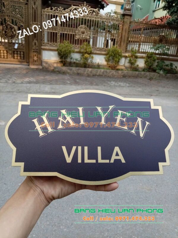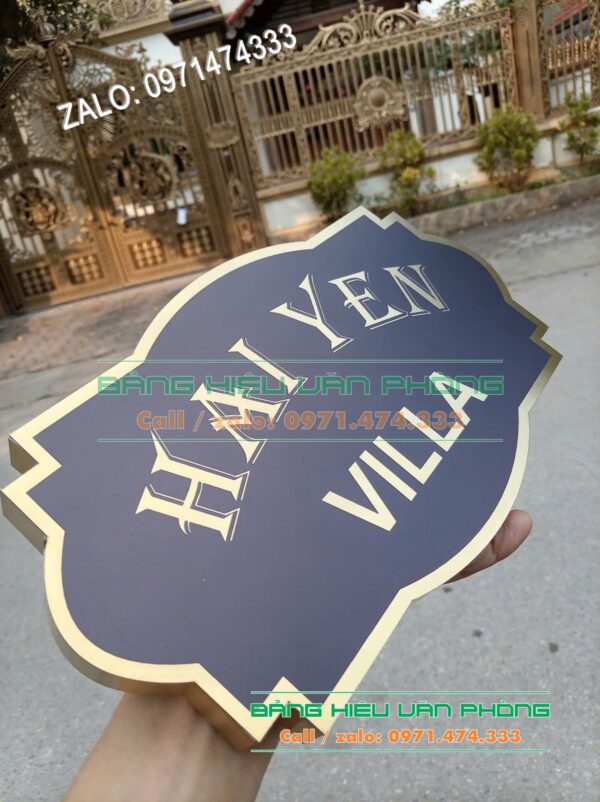 Biển số nhà inox có thể tùy chỉnh kích thước sao cho phù hợp nhất. Chúng tôi luôn lắng nghe ý tưởng để tạo ra sản phẩm độc bản. Bảng villa biệt thự được in ấn màu sắc sắc nét theo đúng yêu cầu. Công nghệ in hiện đại giúp màu sắc bền bỉ và không phai nhòa. Biển inox uốn chân nổi giúp tên căn hộ nổi bật ngay từ cái nhìn đầu tiên. Bạn sẽ hoàn toàn hài lòng với độ hoàn thiện của từng chi tiết. Bảng kim loại vàng dễ dàng lắp đặt trên nhiều bề mặt tường khác nhau. Chúng tôi hỗ trợ giao hàng và hướng dẫn lắp đặt tận nơi.